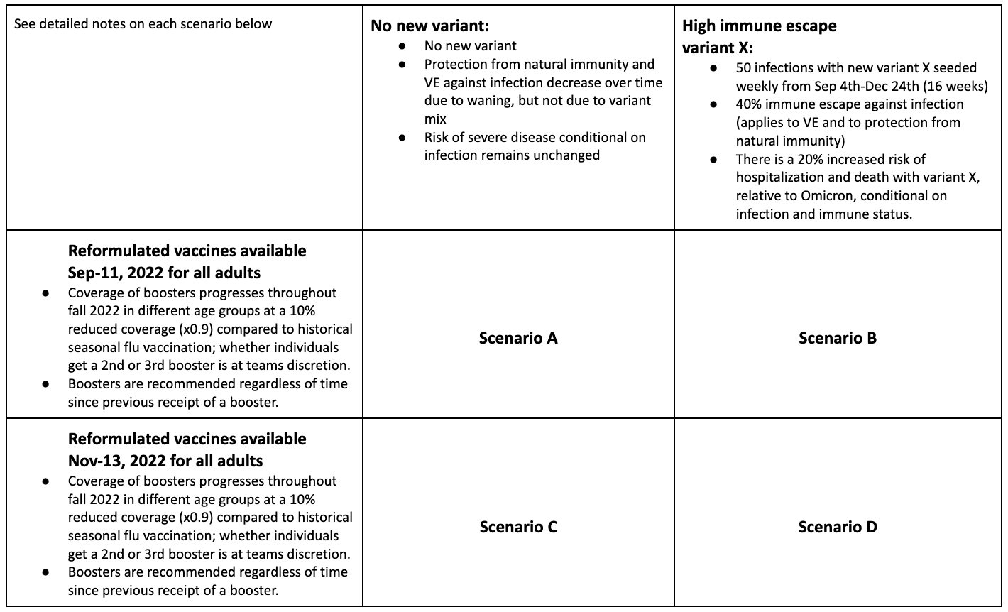 Table 2. COVID-19 Scenario Modeling Hub round 13 scenarios. More detailed scenario definitions and model characteristics can be found at https://github.com/midas-network/covid19-scenario-modeling-hub.
