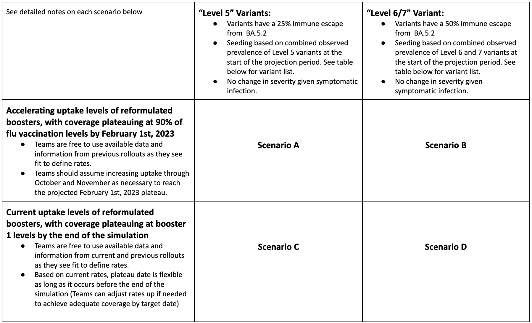 Table 1. COVID-19 Scenario Modeling Hub round 17 scenarios. More detailed scenario definitions and model characteristics can be found at https://github.com/midas-network/covid19-scenario-modeling-hub.